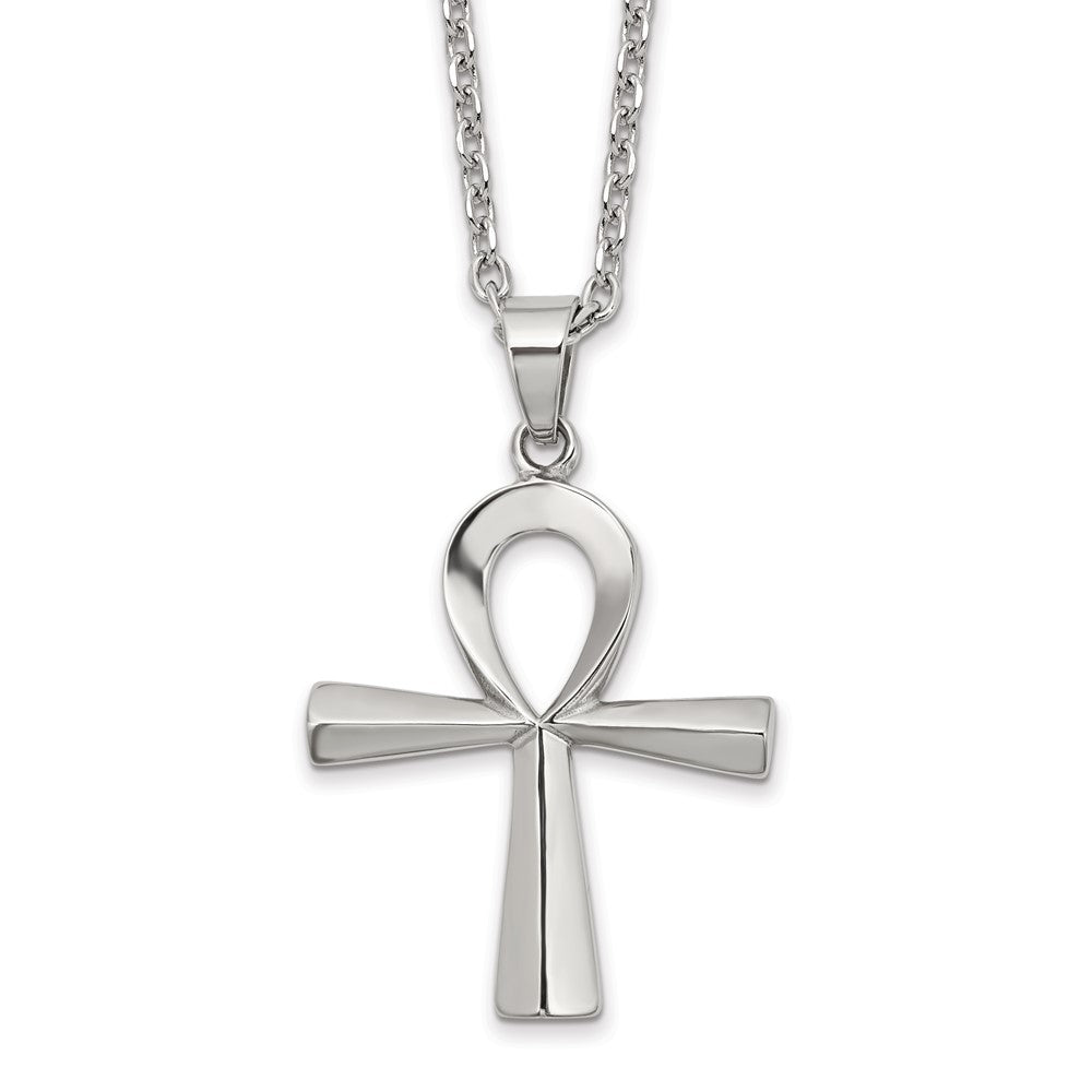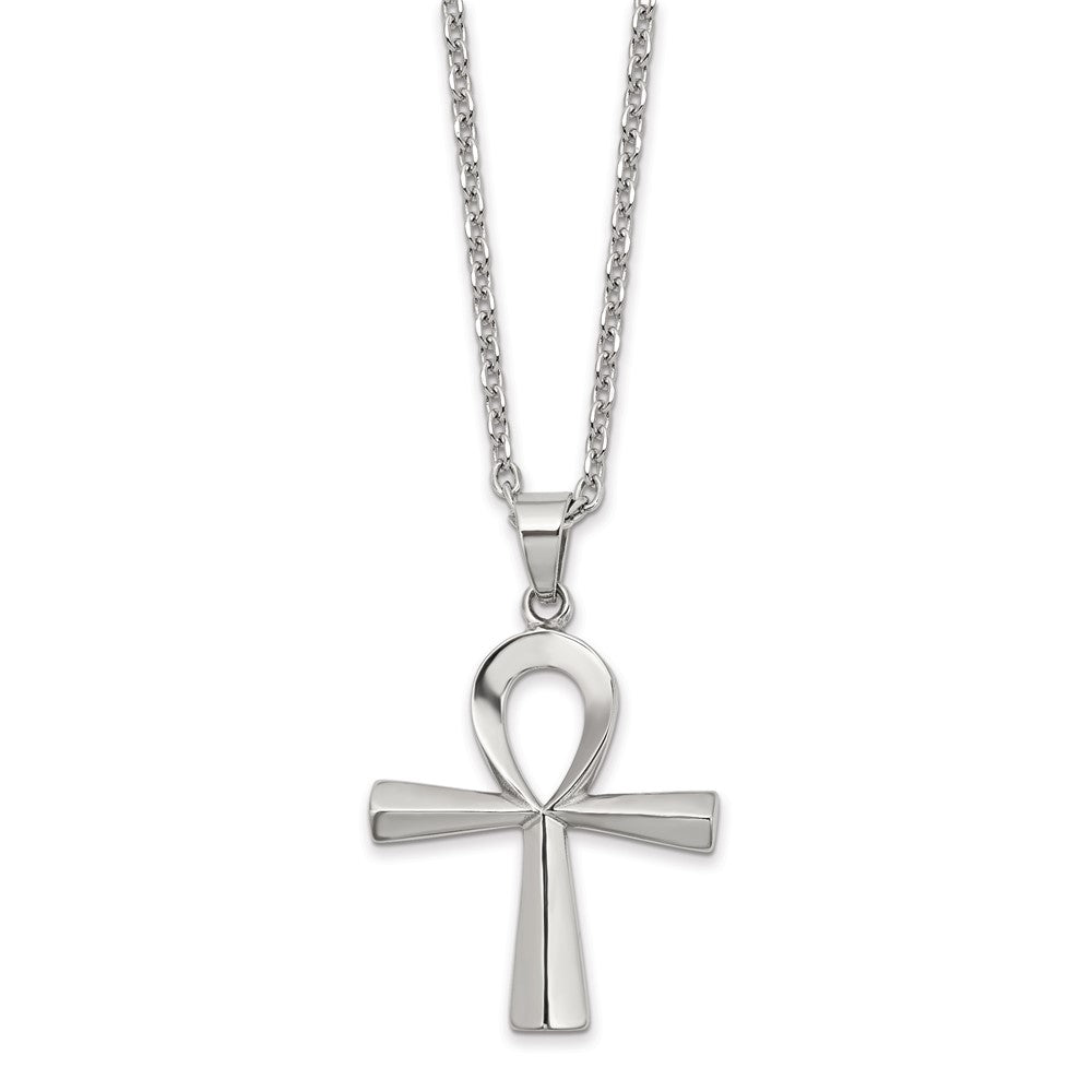 Chisel Stainless Steel Polished Ankh Pendant on a 25.5 inch Box Chain Necklace