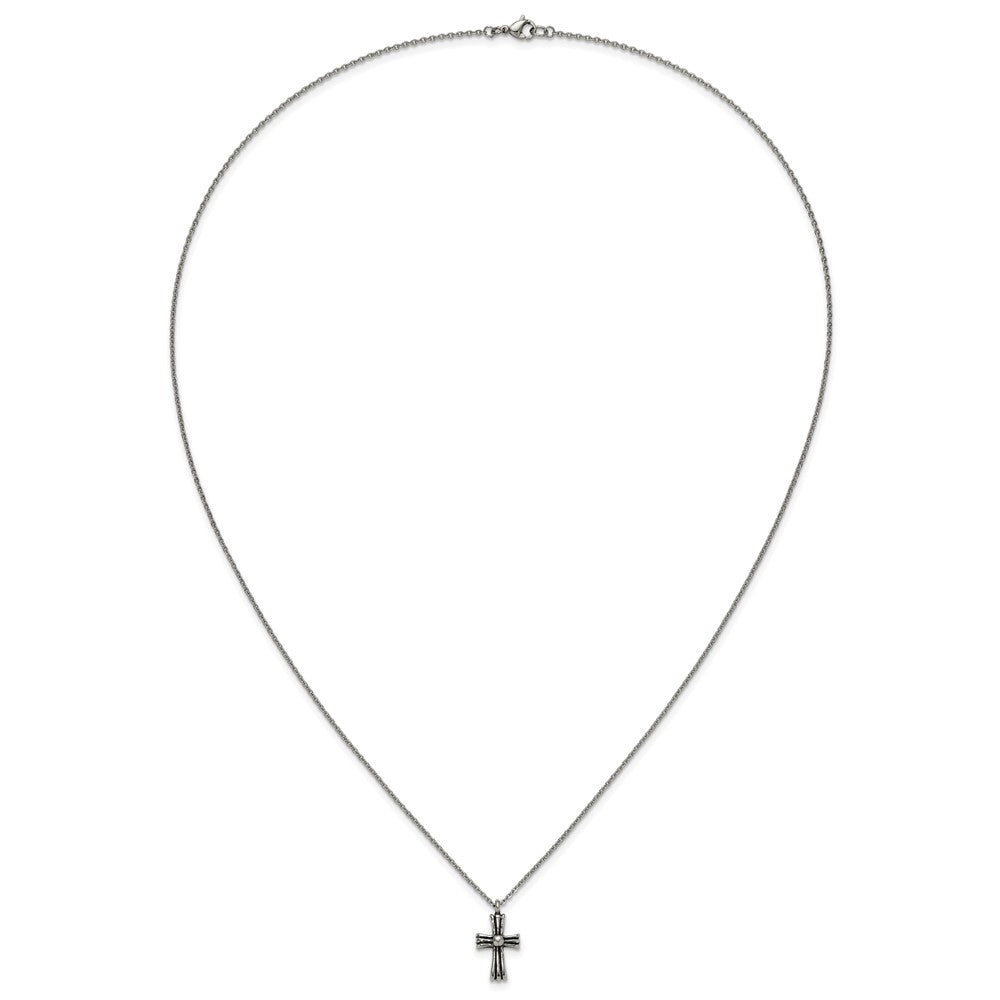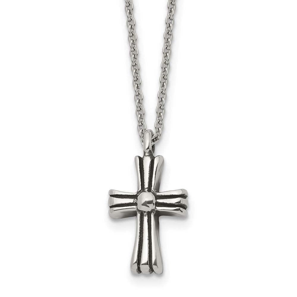Chisel Stainless Steel Antiqued and Polished Cross Pendant on a 24.5 inch Cable Chain Necklace