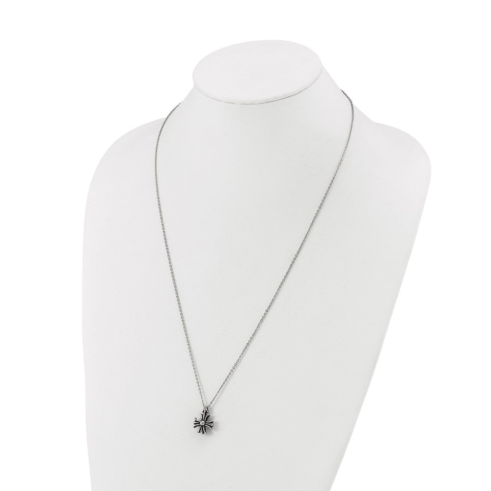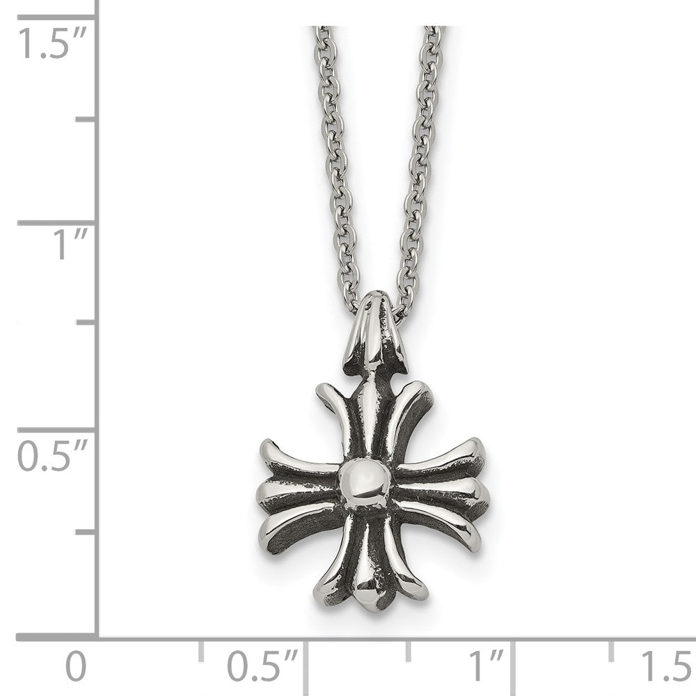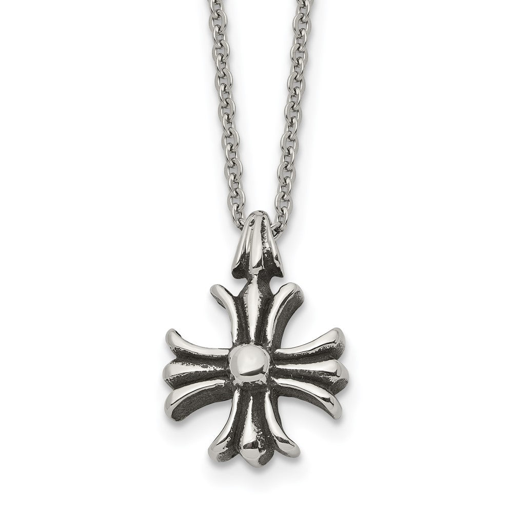 Chisel Stainless Steel Antiqued and Polished Fancy Cross Pendant on a 24.5 inch Cable Chain Necklace