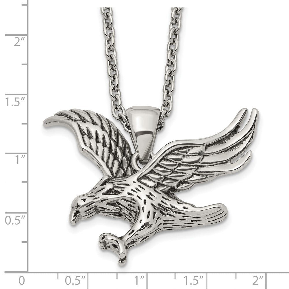 Chisel Stainless Steel Polished Eagle Pendant on a 24 inch Cable Chain Necklace