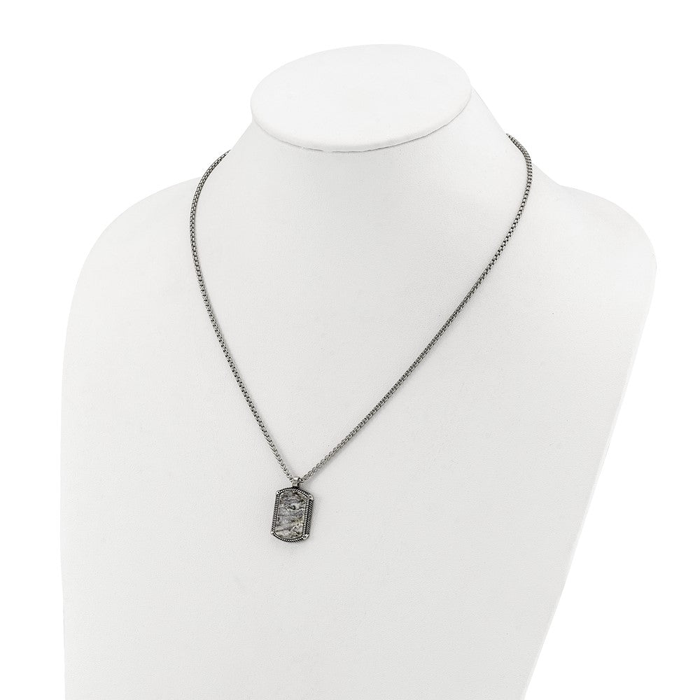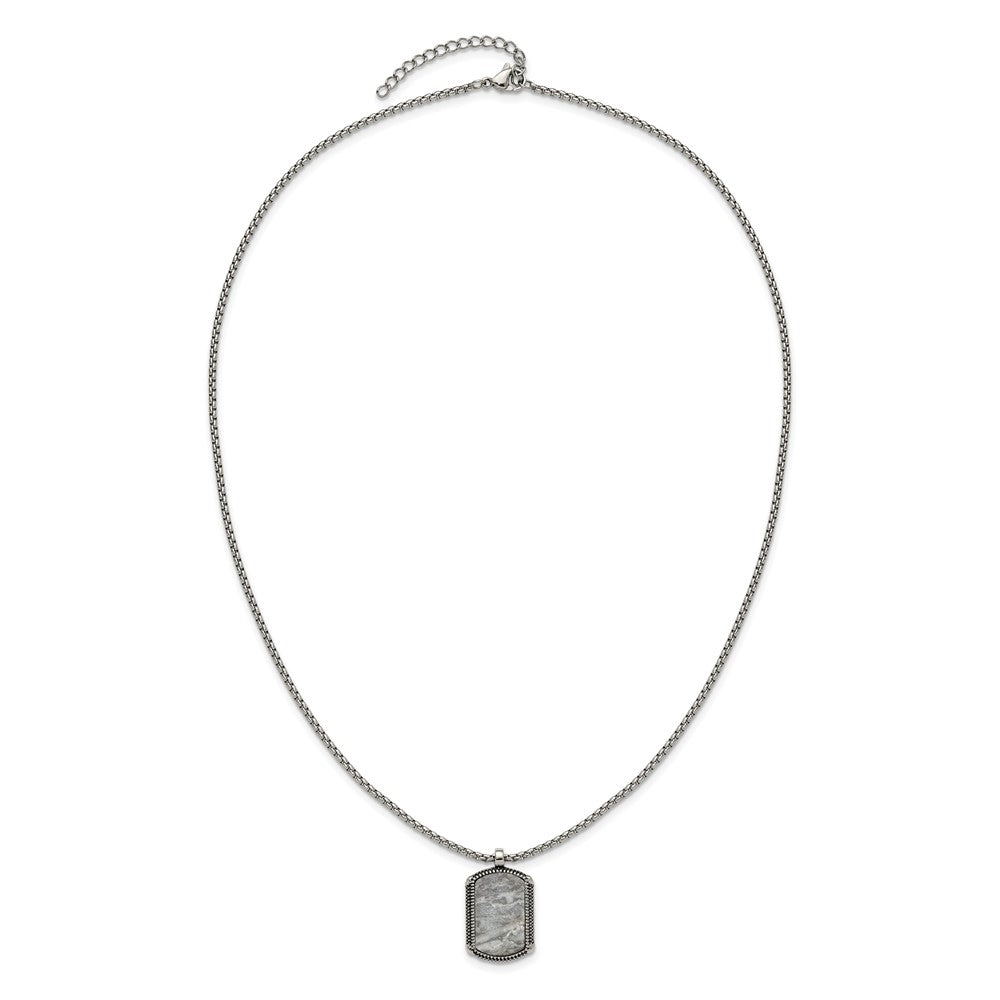 Chisel Stainless Steel Antiqued and Polished Jasper Dog Tag on a 20 inch Box Chain Necklace