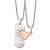 Chisel Stainless Steel Polished Rose IP-plated with CZ Heart Pendants on 22 inch Ball Chain Necklace Set
