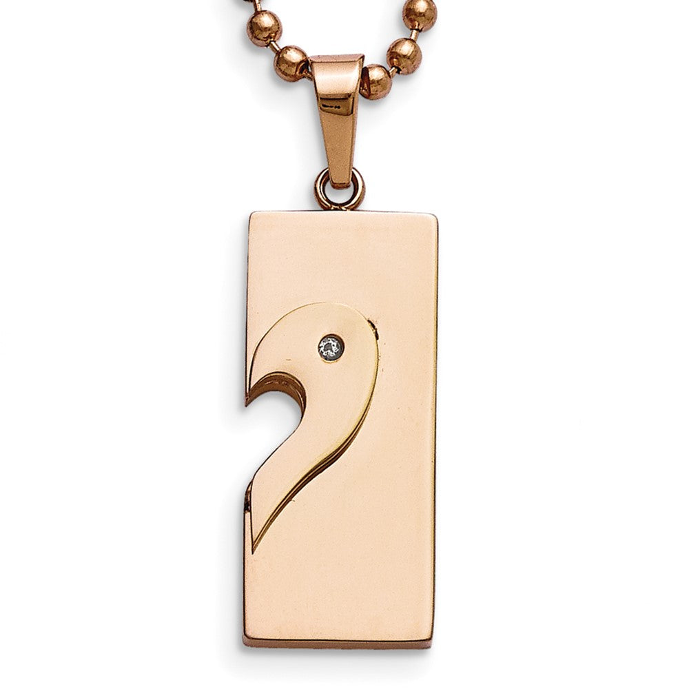 Chisel Stainless Steel Polished Black and Rose IP-plated Heart Pendants on 22 inch Ball Chain Necklace Set