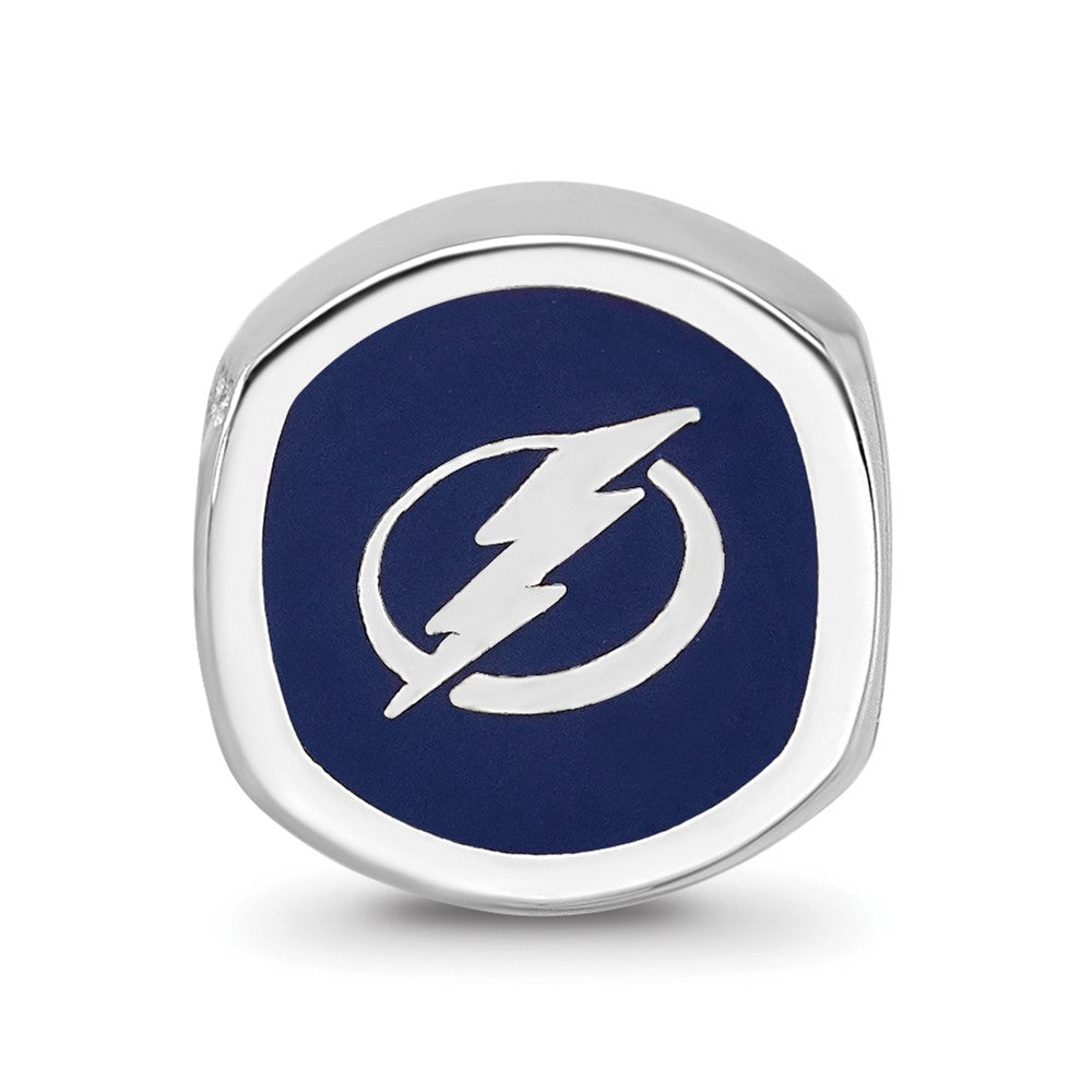 Sterling Silver NHL LogoArt Tampa Bay Lightning Cushion Shaped Enameled Logo Bead