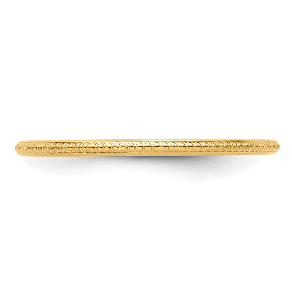 14K Yellow Gold 1.2mm Beaded Stackable Band Size 7.5