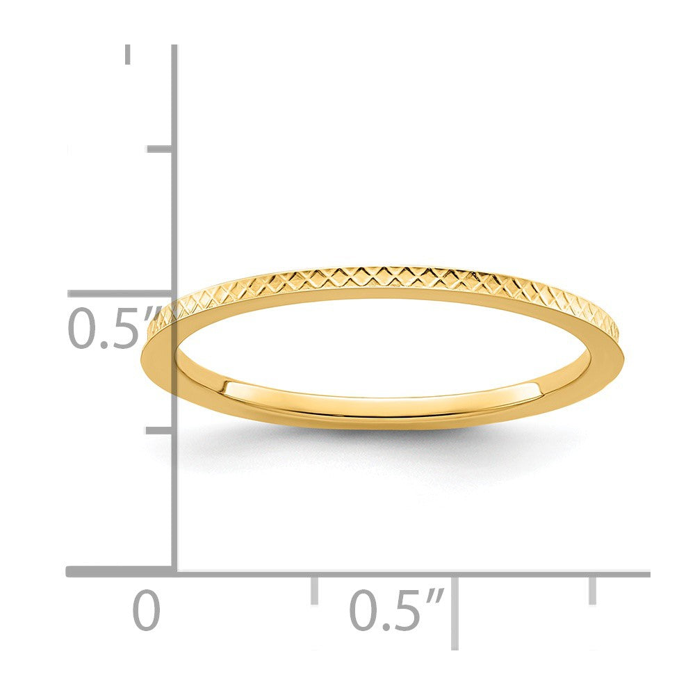 14K Yellow Gold 1.2mm Criss-Cross Pattern Stackable Band Size 7.5