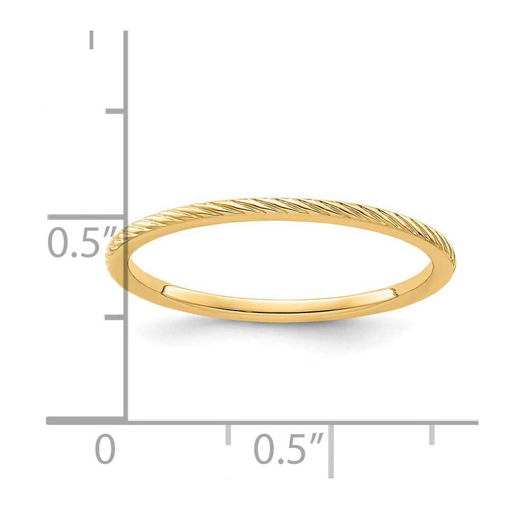 14K Yellow Gold 1.2mm Twisted Wire Pattern Stackable Band Size 5.5