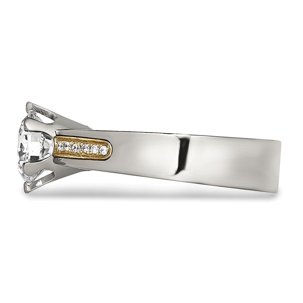 Chisel Titanium Polished with 14k Gold Inlay Accent CZ Ring