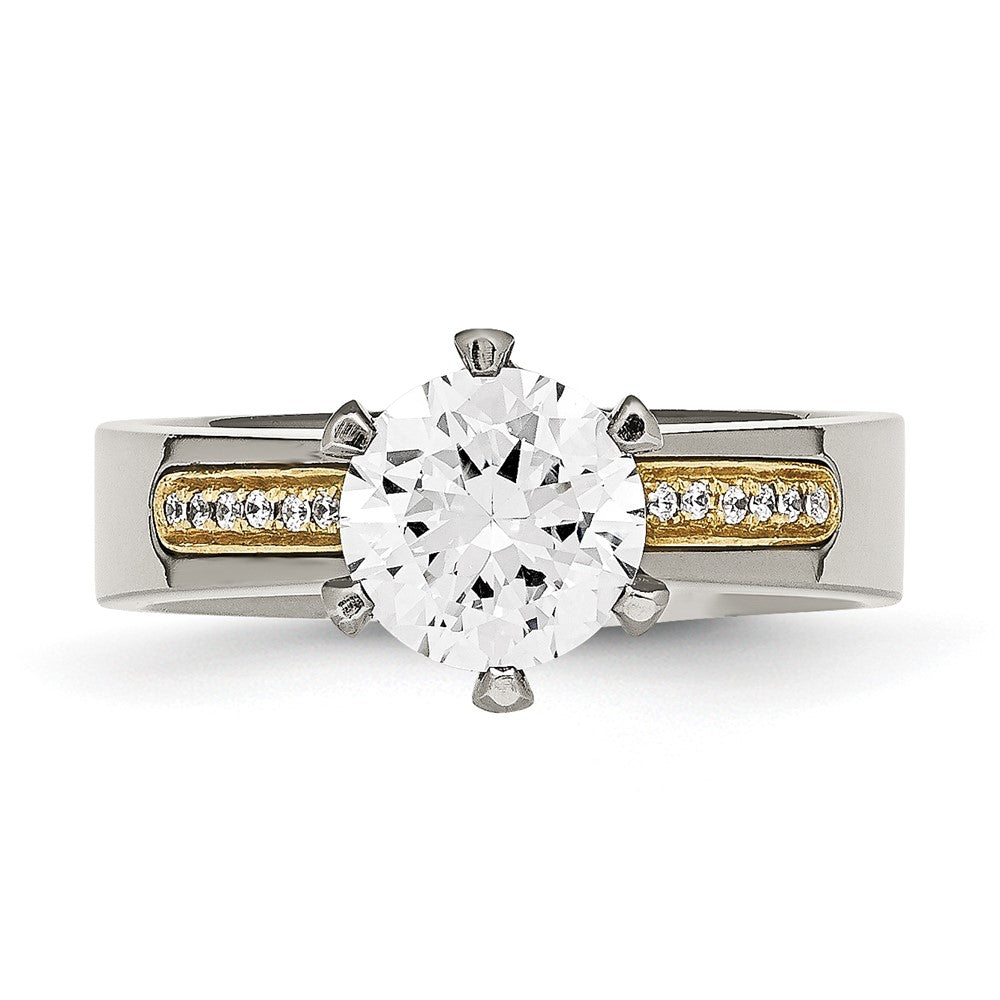Chisel Titanium Polished with 14k Gold Inlay Accent CZ Ring