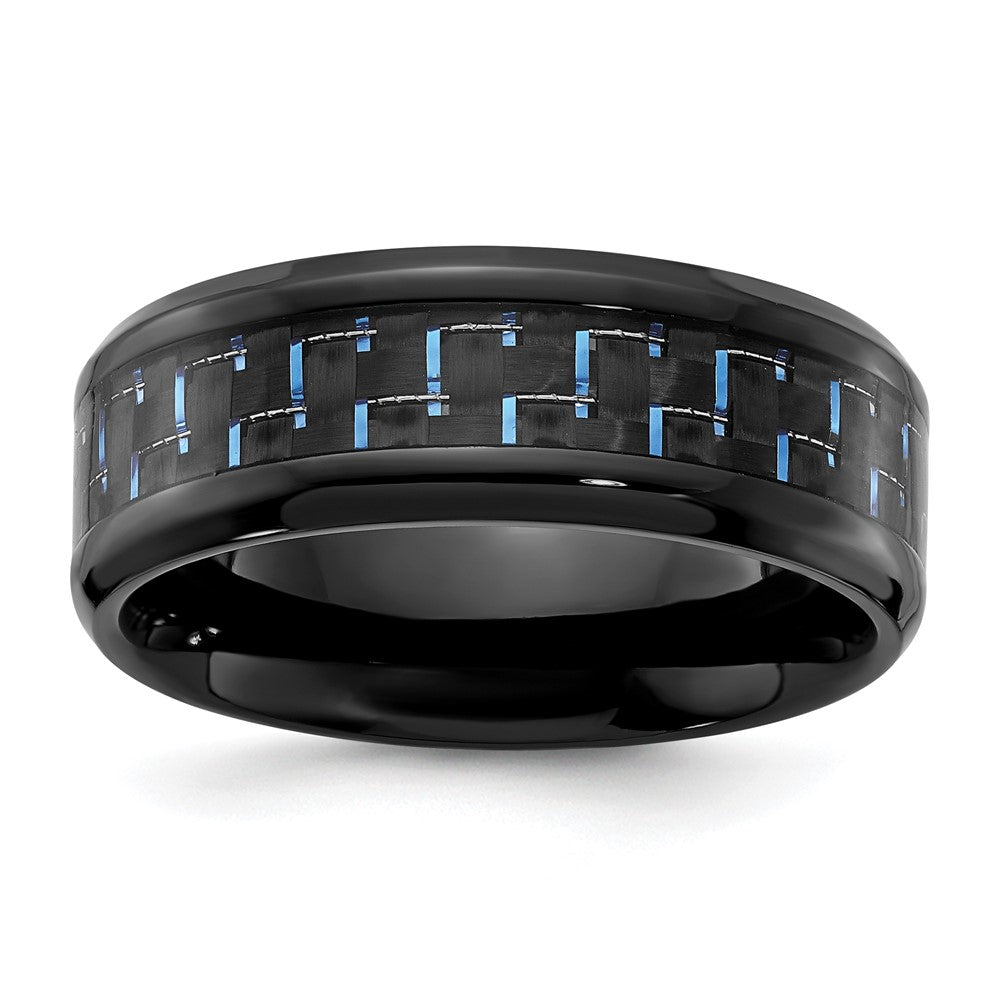 Chisel Black Titanium Polished with Black and Blue Carbon Fiber Inlay 8mm Band