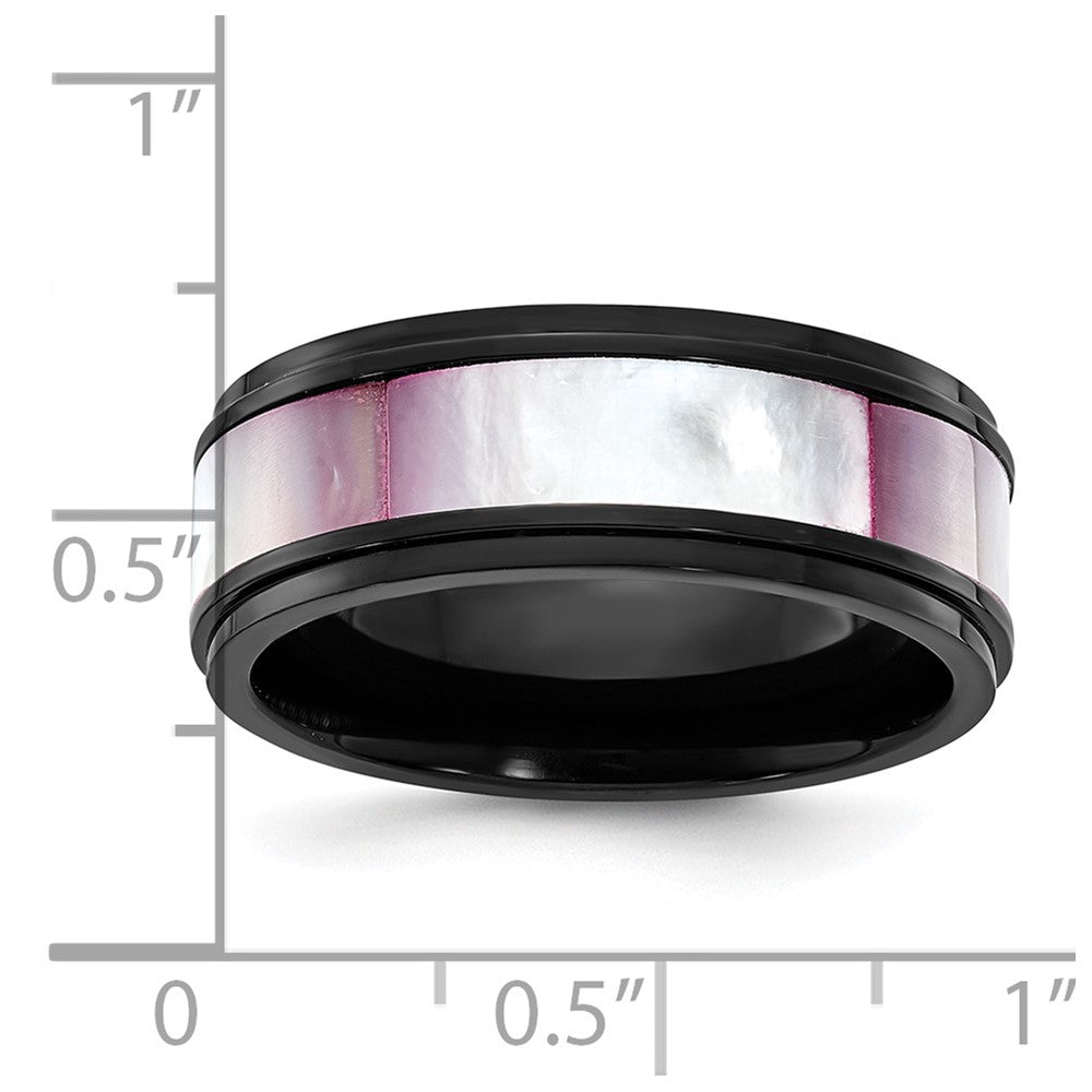 Chisel Titanium Black IP-plated Pink Mother of Pearl Inlay 8mm Band