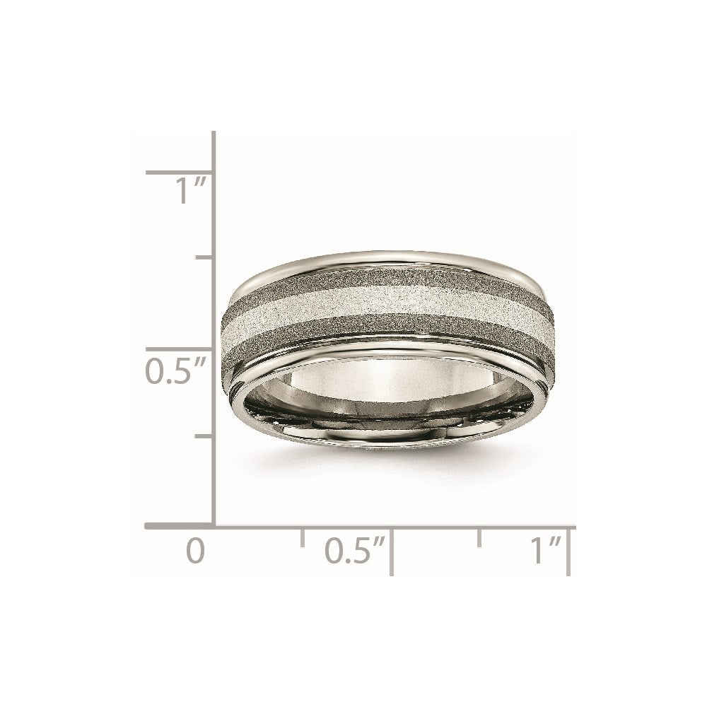 Chisel Titanium Polished with Sterling Silver Inlay Stone Finish Center Grooved Band