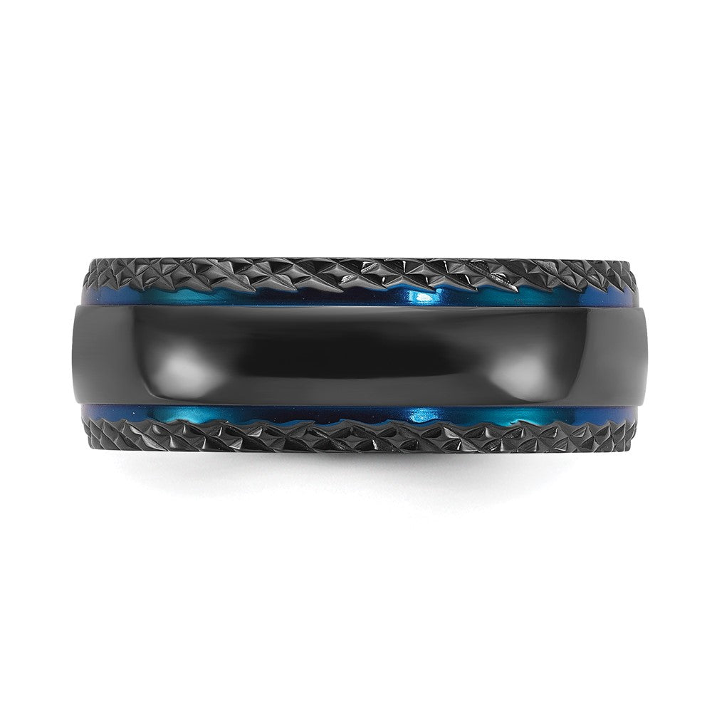 Chisel Black Zirconium Polished Blue IP-plated with Textured Edge 8mm Band