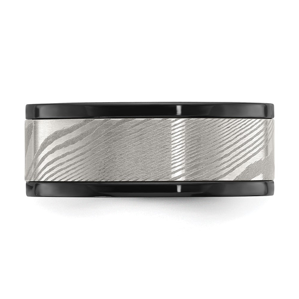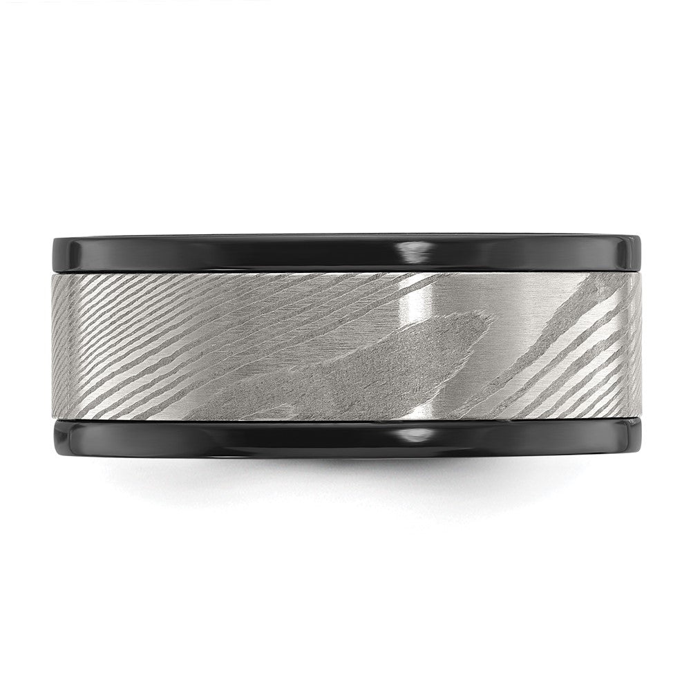 Chisel Black Zirconium Polished with Damascus Inlay 9mm Band